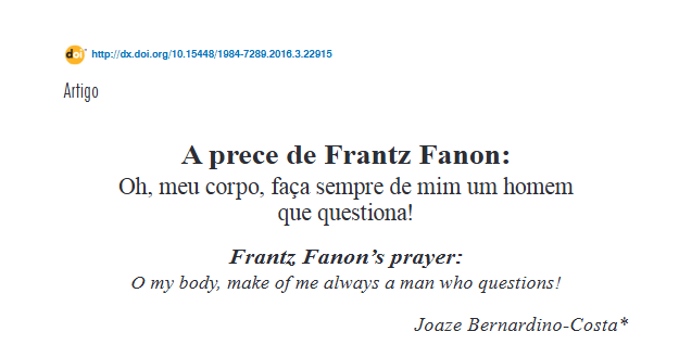 Palavras-chave: Frantz Fanon. Colonialismo. Zona do não-ser. Corpo. (In)visibilidade.